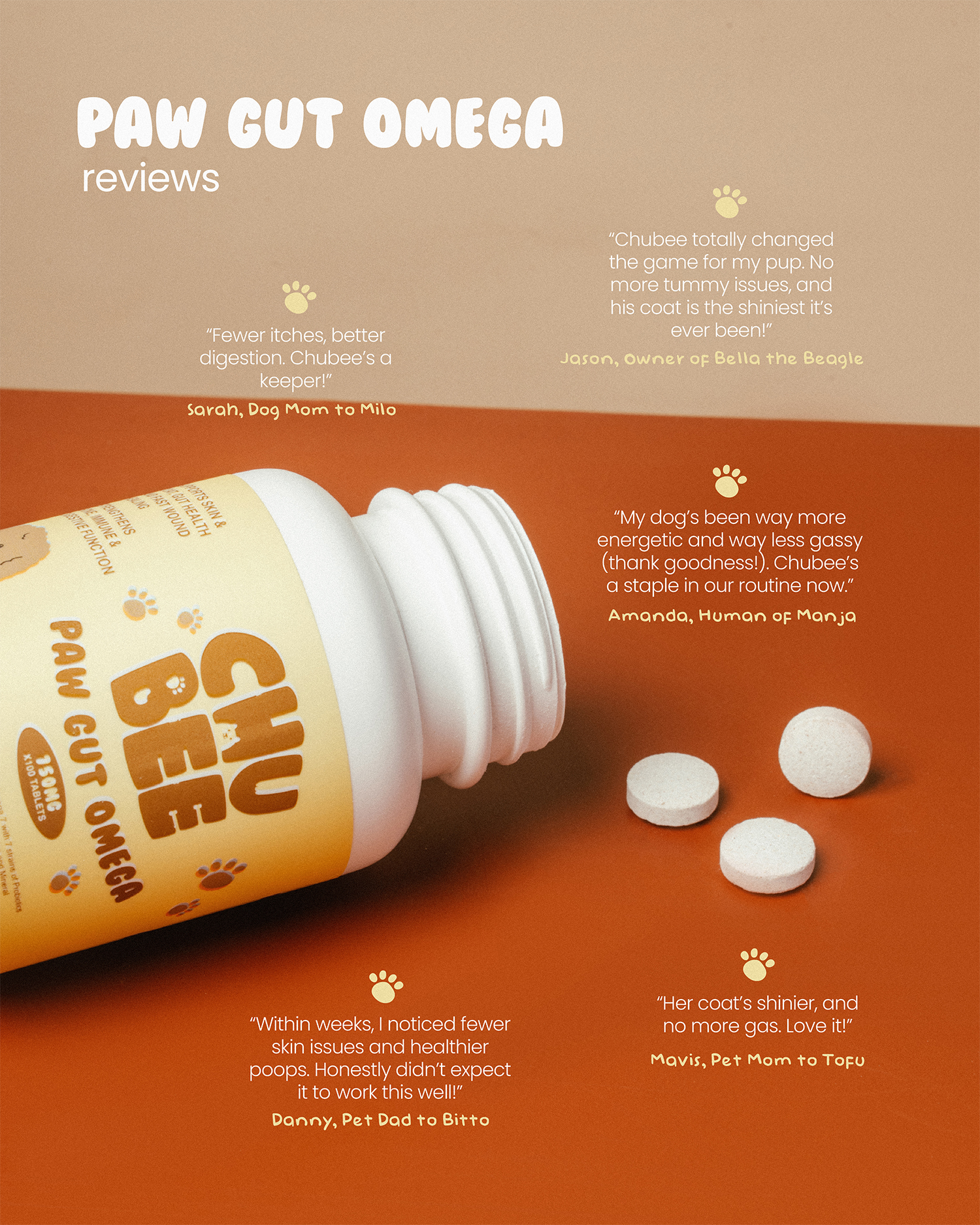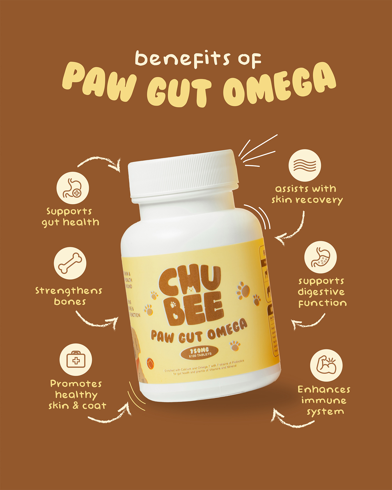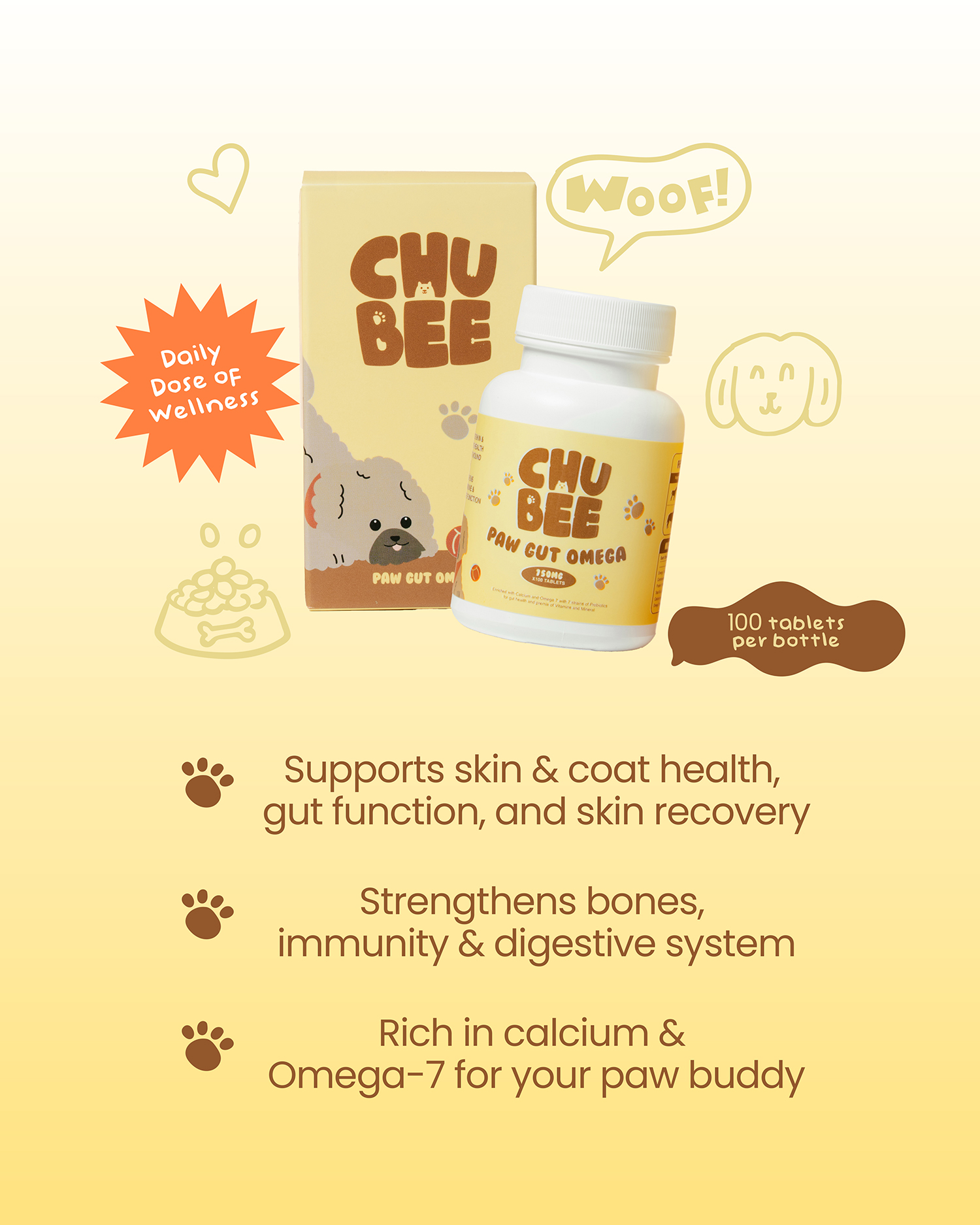 Help your furkids stay healthy from the inside out with CHUBEE Paw Gut Omega – a scientifically formulated 6-in-1 supplement packed with premium ingredients for better digestion, stronger immunity, and healthier skin and fur.